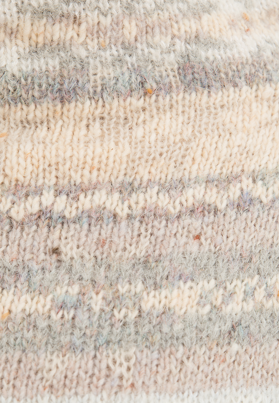 Детали: прямой крой, высокий ворот, спущенный рукав длиной ¾, боковые разрезы, этно-орнамент в скандинавском стиле, пушистая фактура нити.