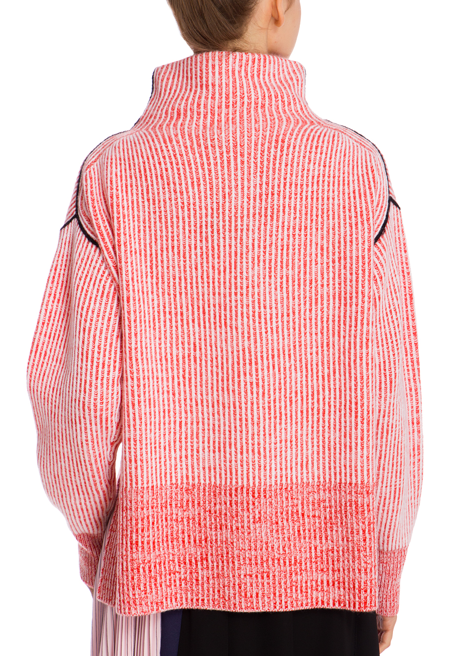 Детали: прямой крой,высокий ворот, спущенный длинный рукав, контрастная отделка швов, вязка резинкой.