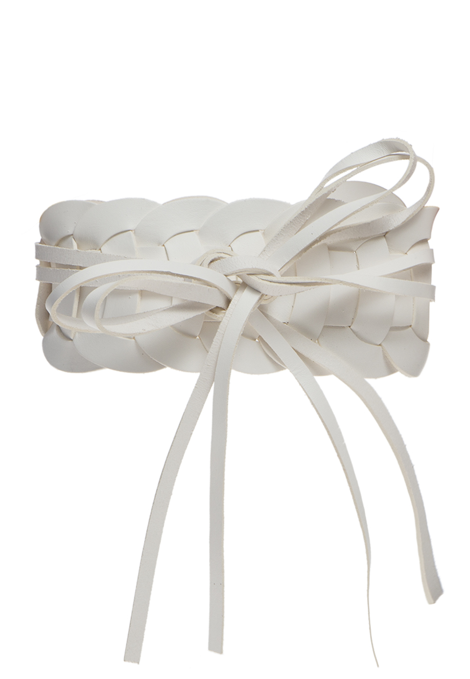Детали: широкий кожаный ремень с завязками, плетёный. Гладка матовая кожа.