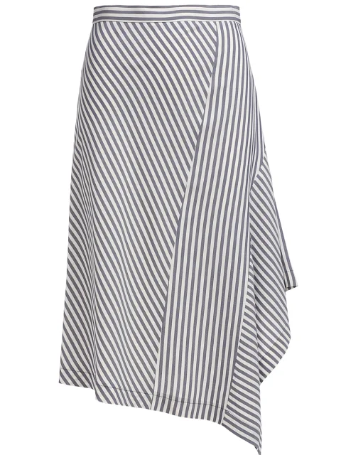 Детали: крой с асимметричным клином, высокая посадка, асимметричная длина, принт в полоску.