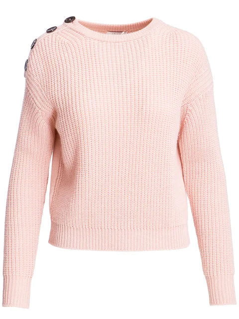 Детали: прямой укороченный крой, круглый вырез горловины, спущенный длинный рукав, декоративные пуговицы по плечевому шву, фактурная вязка резинкой.