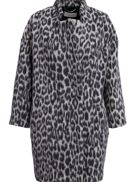 Детали: крой кокон, отложной воротник с лацканами, спущенный длинный рукав, прорезные карманы по боковым швам, застёгивается скрытой пришивной кнопкой, леопардовый принт.