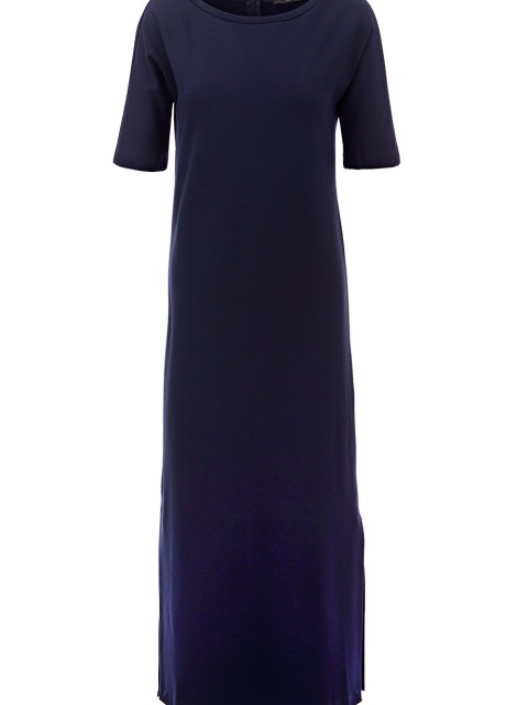 Детали: прямой крой, вырез горловины лодочкой, втачной рукав длиной до локтя, боковые разрезы. Застёгивается на спинке потайной молнией.