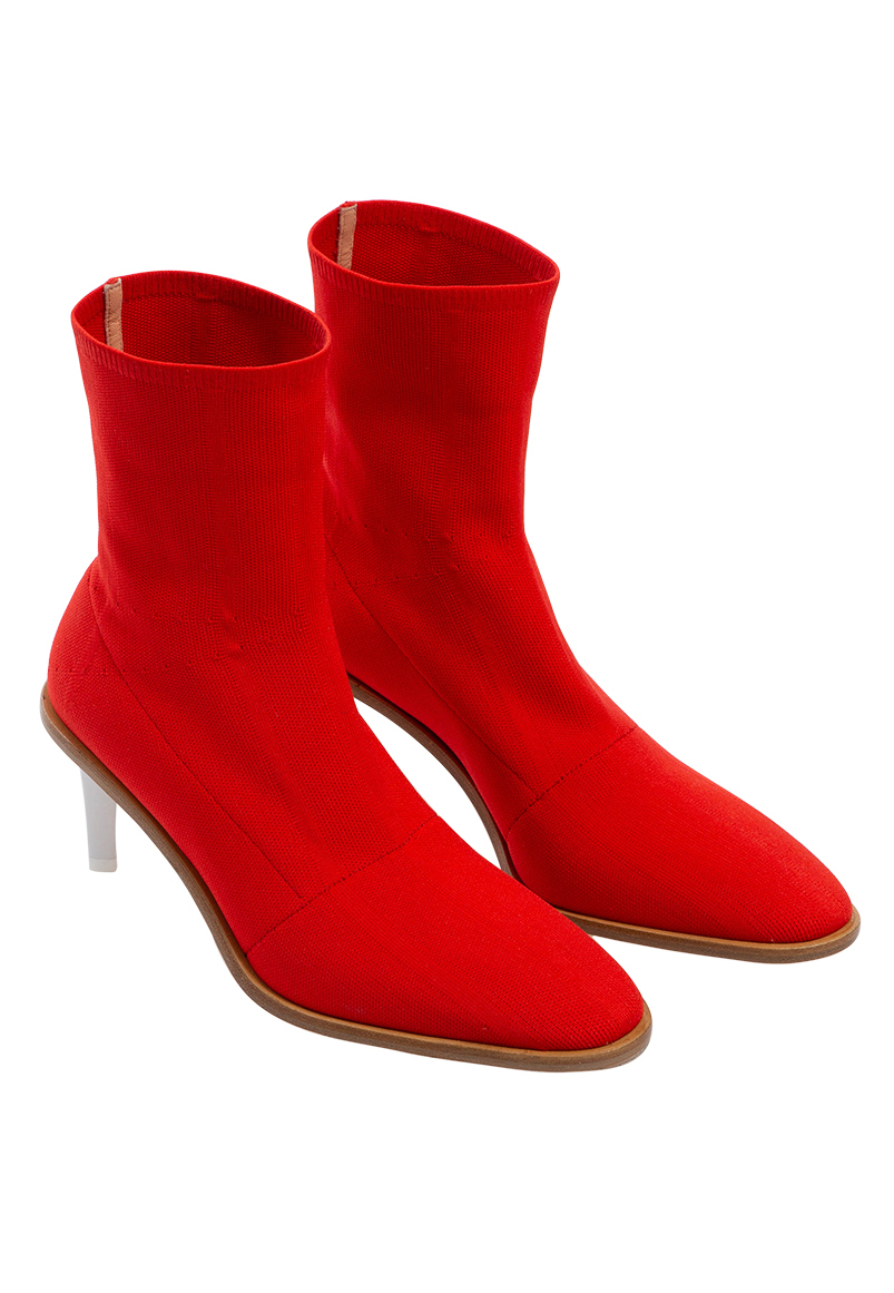 Детали: заострённый носок, ботинок из джерси, контрастный каблук высотой 6 см. Высота чулка - 2/3 голени.