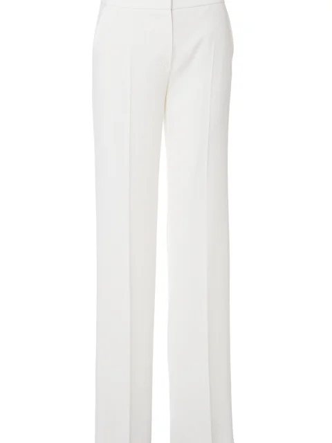 Детали: прямой крой от бедра, средняя посадка, французские боковые карманы с ручным стежком, пояс со скрытым крючком, ширинка, стрелки вдоль штанин.