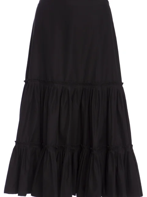 Детали: А-силуэт, высокая посадка, оборки в два яруса, длина миди.