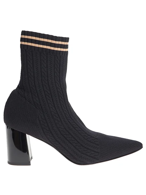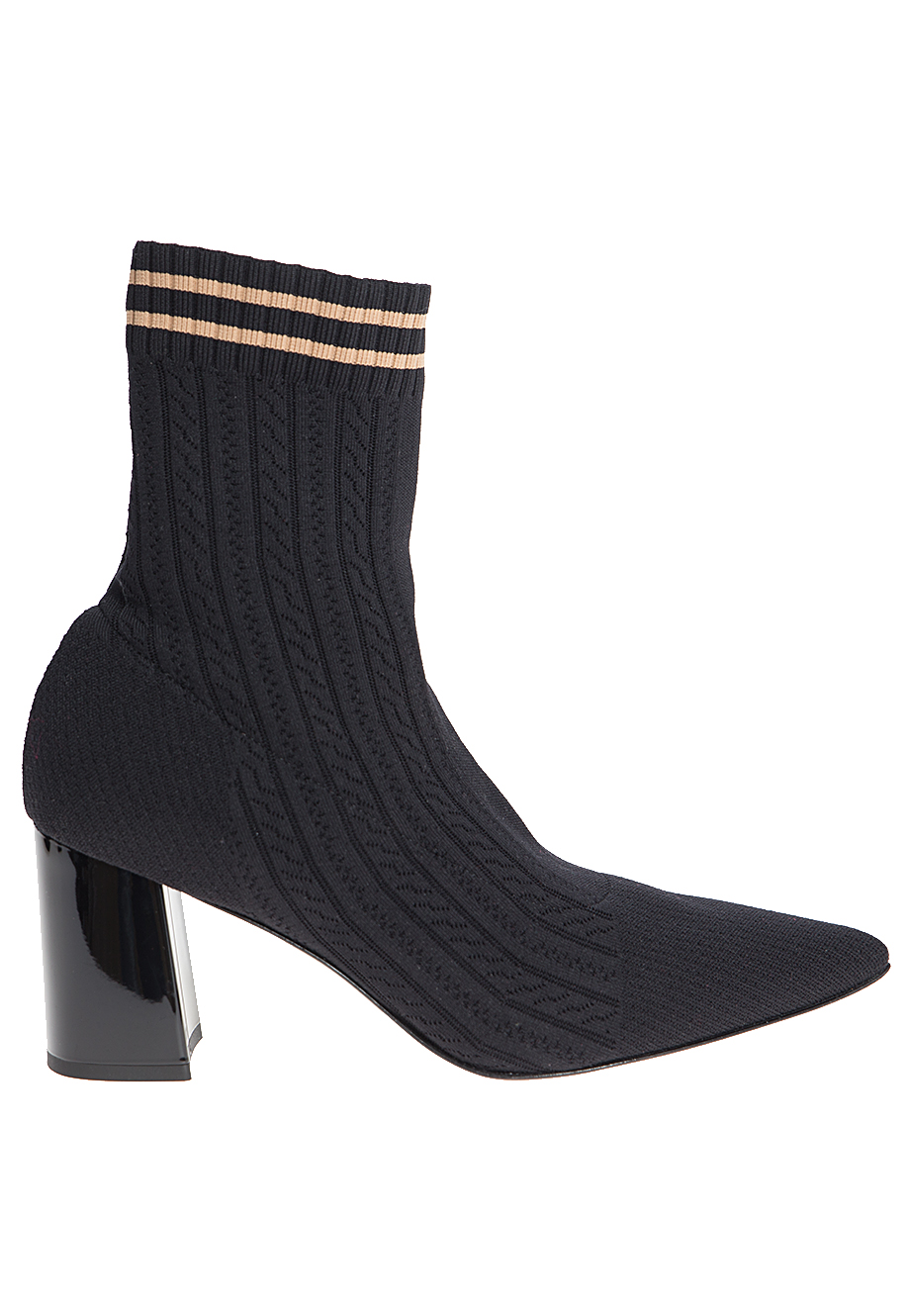 Детали: заострённый носок, ботинок из фактурного джерси с узором, устойчивый фигурный каблук высотой 8 см. Высота чулка -2/3 голени.