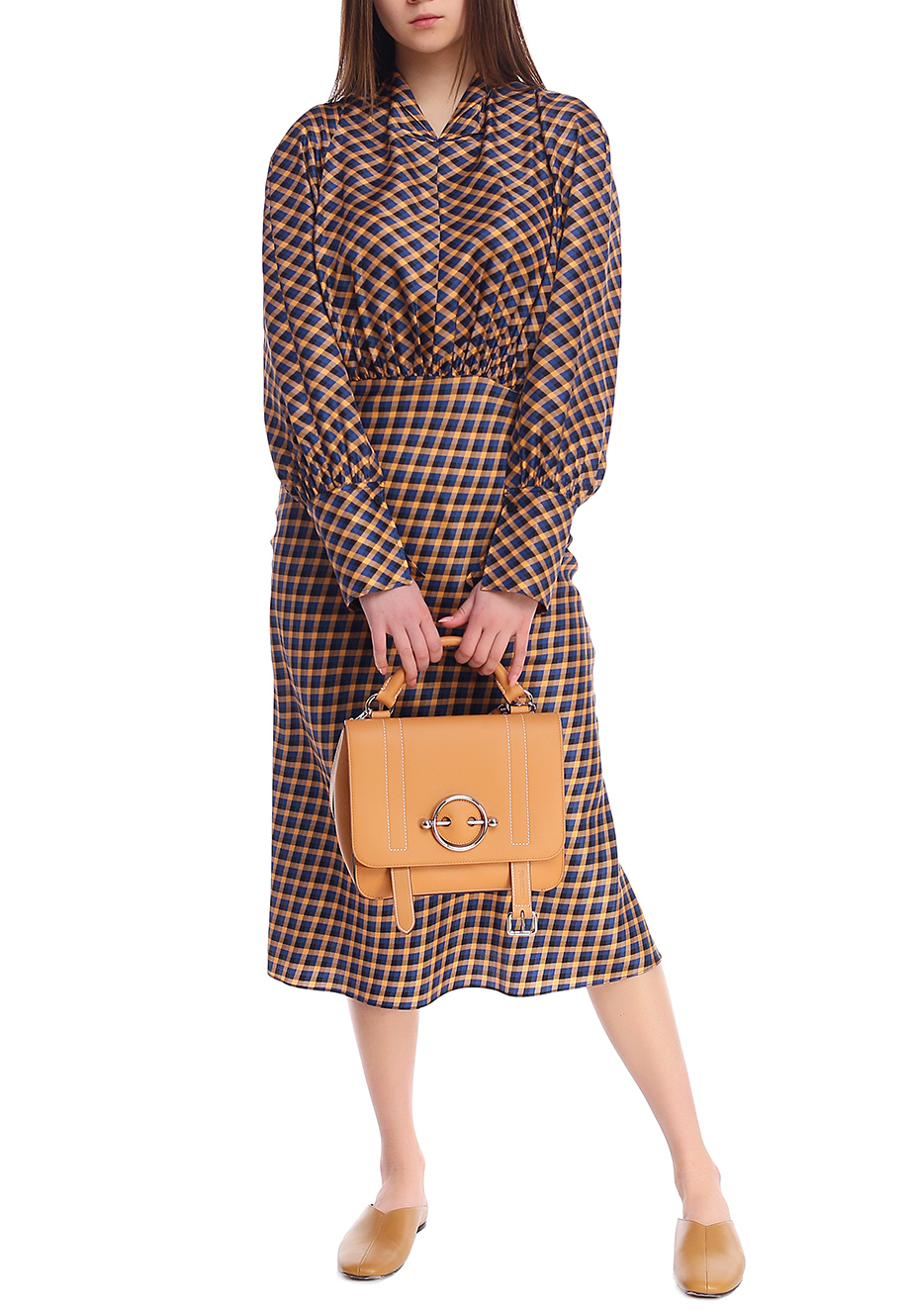 Детали: прямоугольная форма, большая крышка клапан с круглым металлическим замком и хлястиками, ручка, регулируемый плечевой ремень, одно отделение и дополнительный карман.