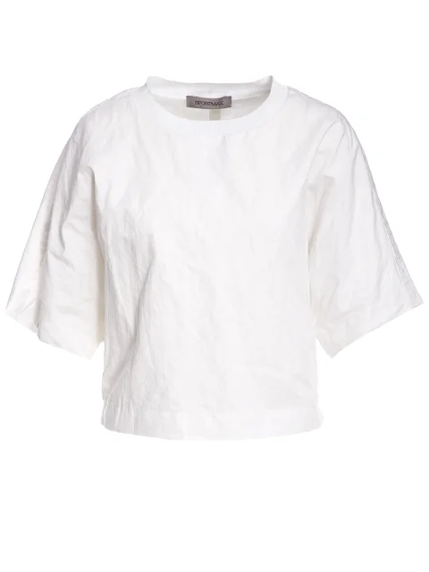 Детали: прямой свободный крой, круглый вырез горловины с трикотажной отделкой, цельнокроеный свободный рукав длиной до локтя, на спинке по нижнему краю резинка.