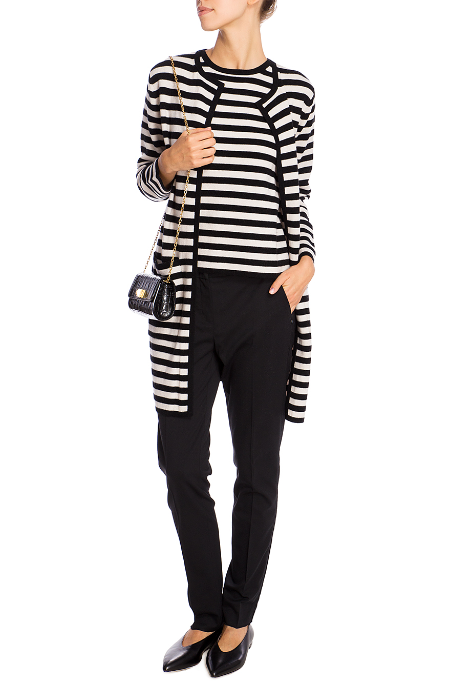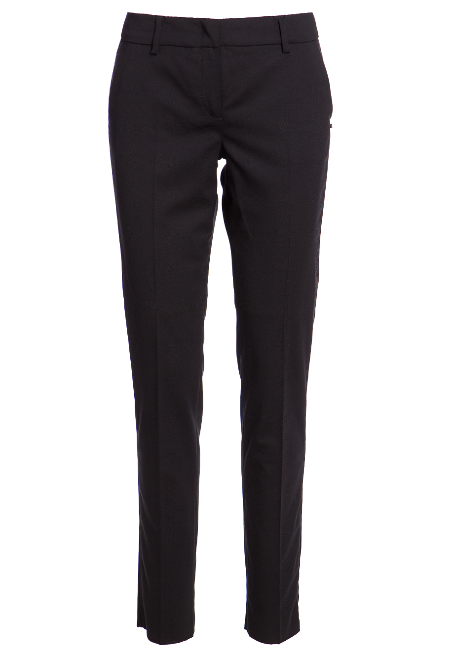 Детали: прямой крой, слегка зауженный книзу, средняя посадка, французские боковые карманы, сзади два прорезных с рантом, пояс со шлевками для ремня, стрелки вдоль штанин.