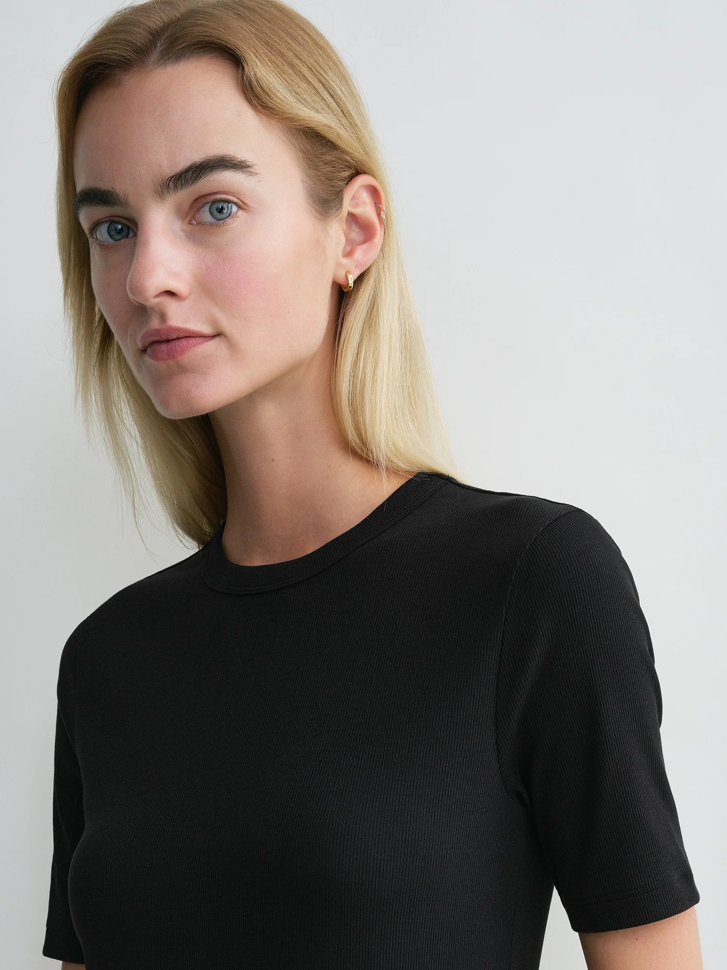 Класична футболка в рубчик з бавовняного трикотажу з додаванням еластану