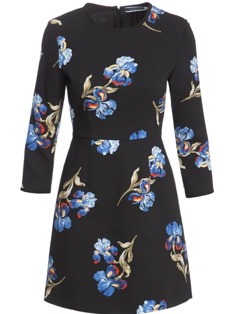 Детали: А-силуэт, круглый вырез горловины, втачной рукав длиной 7/8, отрезная линия талии, цветочный принт, потайная молния на спинке.