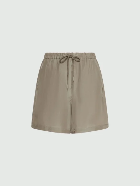Шорти-бермуди з чистого шовку Habotai Прямий крій Еластична талія з регульованим шнурком і фірмовими металевими петлями Похилі бічні кишені та прорізні задні кишені Металевий логотип на задній кишені Колір: зелений