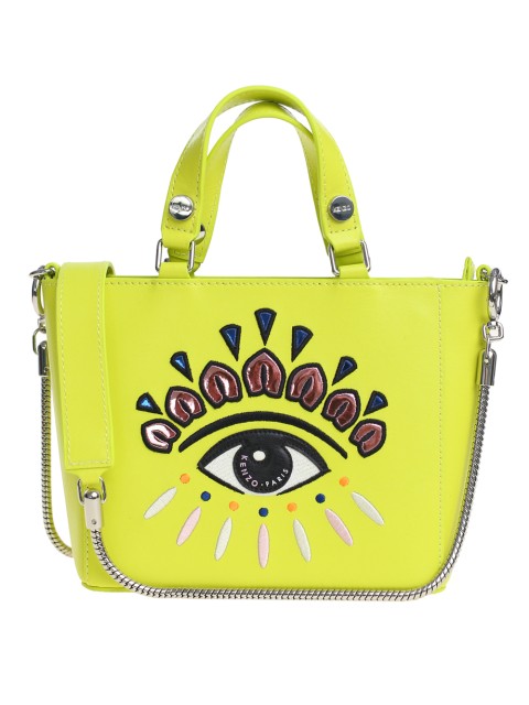 Детали: трапециевидная форма, две ручки, плечевой ремень на цепочке с карабинами, аппликация с эмблемой Eye, отделение на молнии.