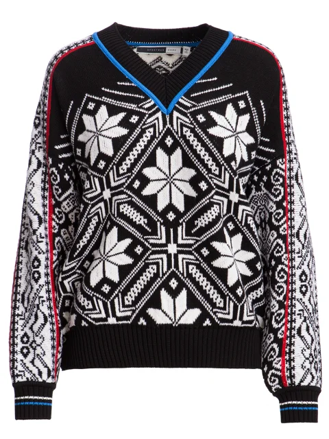 Детали: овальный крой, V-образный вырез, спущенный длинный рукав, манжеты по нижнему краю и на рукавах, монохромные орнаменты разных мотивов.
