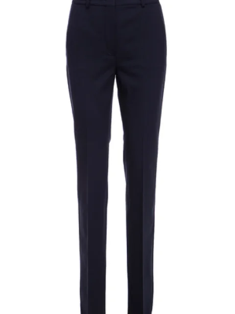 Детали: прямой крой, высокая посадка, французские боковые карманы, сзади два прорезных с рантом и пуговицей, стрелки вдоль штанин.