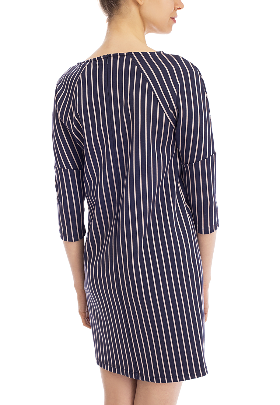 Детали: прямой крой, длина мини, вырез горловины лодочкой, рукава реглан длиной 3/4, потайная молния на спинке. Материал: джерси жаккардового плетения.
