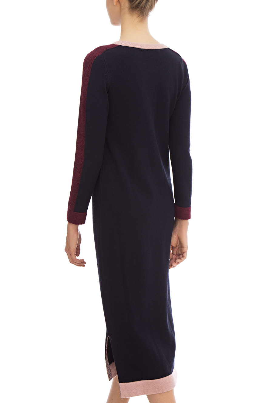 Детали: прямой крой, круглый выреза горловины с контрастным кантом, длинный втачной рукав с цветной манжетой и лампасом по всей длине. Боковые разрезы, цветной кант по нижнему краю. Цветные элементы с буклированой текстурой.