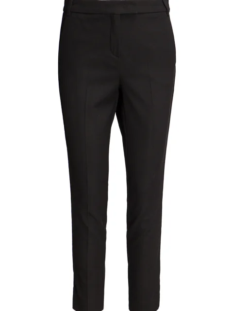 Детали: прямой крой, слегка зауженный книзу, французские боковые карманы, два прорезных с рантом сзади, стрелки вдоль штанин, бархатные лампасы по боковым швам, пояс со шлевками для ремня.