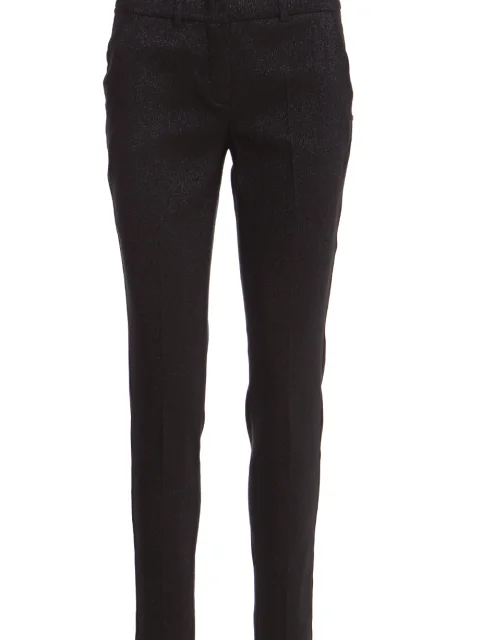 Детали: прямой крой слегка зауженный книзу, средняя посадка, французские карманы по бокам, сзади два прорезных с рантом. Пояс со шлевками для ремня и потайным крючком, ширинка, длина 7/8, рельефная текстура ткани.