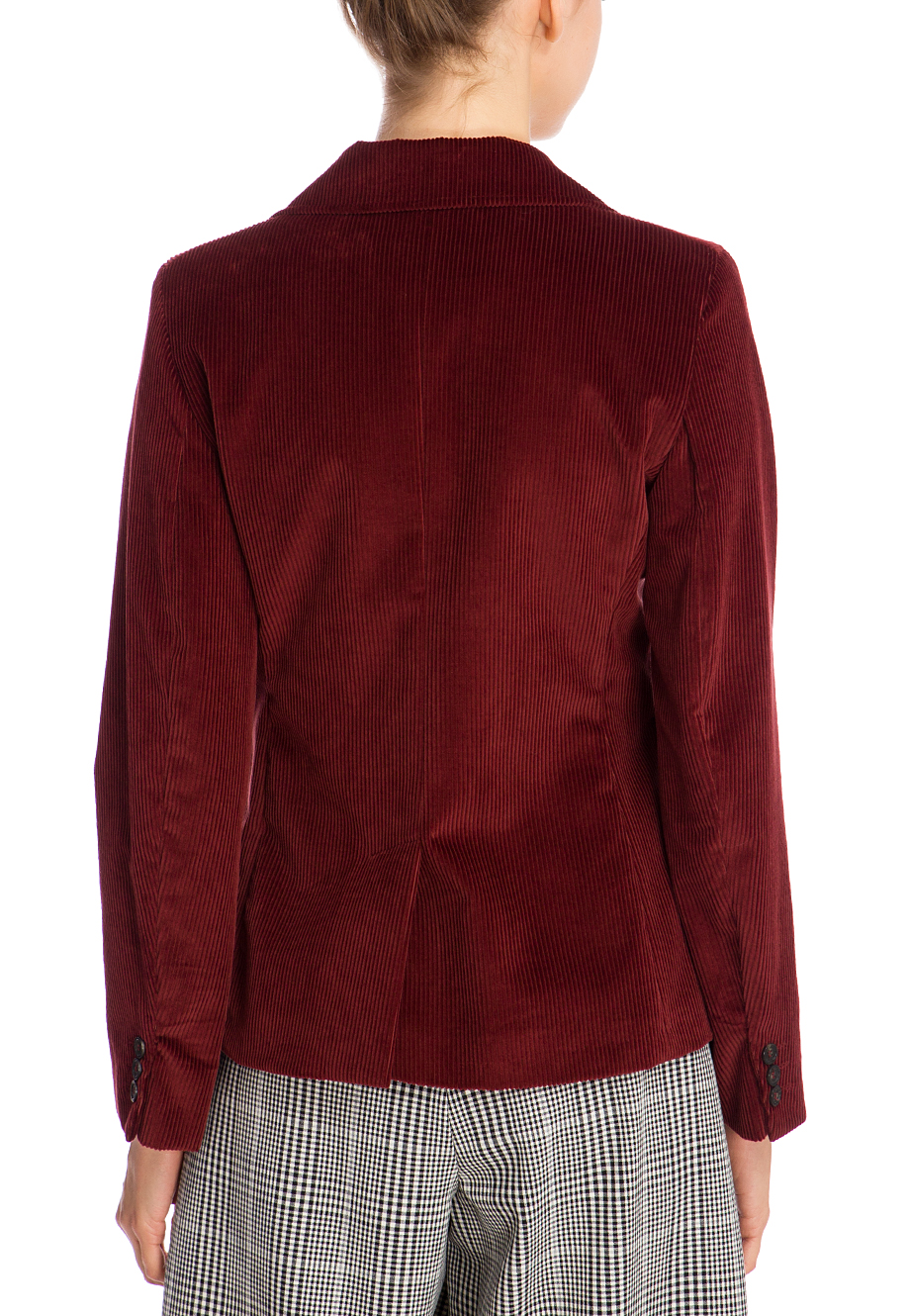 Детали: прямой крой, отложной воротник с лацканами, накладной нагрудный карман и боковые, две пуговицы.