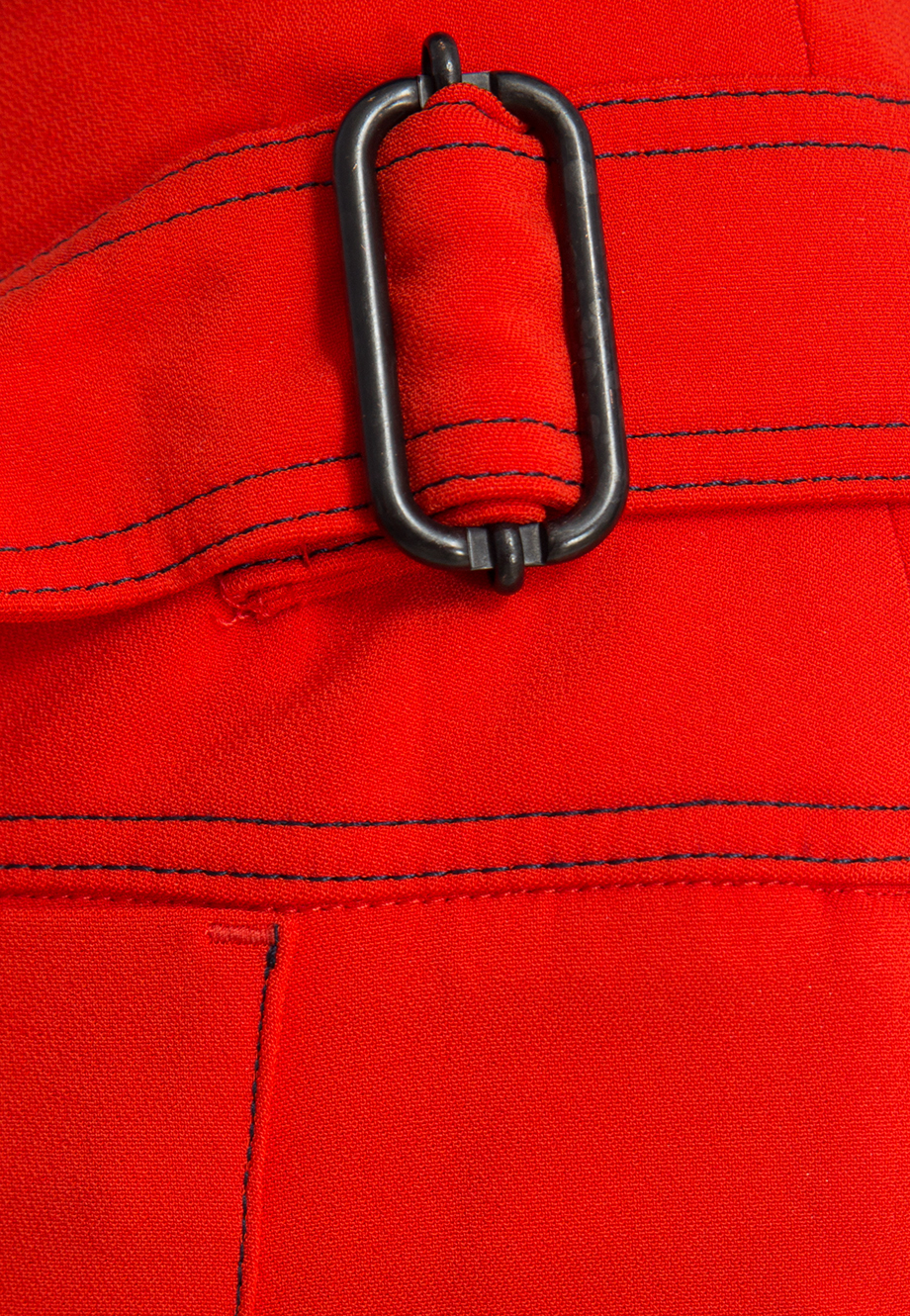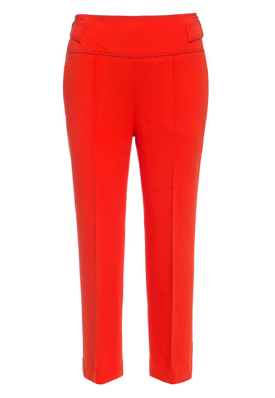 Детали: прямой укороченный крой, средняя посадка, сзади два больших накладных кармана, по бокам хлястики с затяжными пряжками, стрелки вдоль штанин.