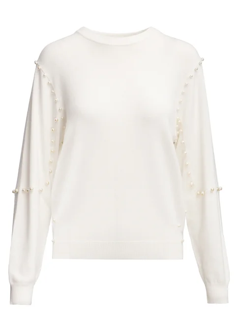Детали: прямой крой, круглый вырез горловины, длинный втачной рукав, манжеты по нижнему краю и на рукавах. Жемчужные бусины.