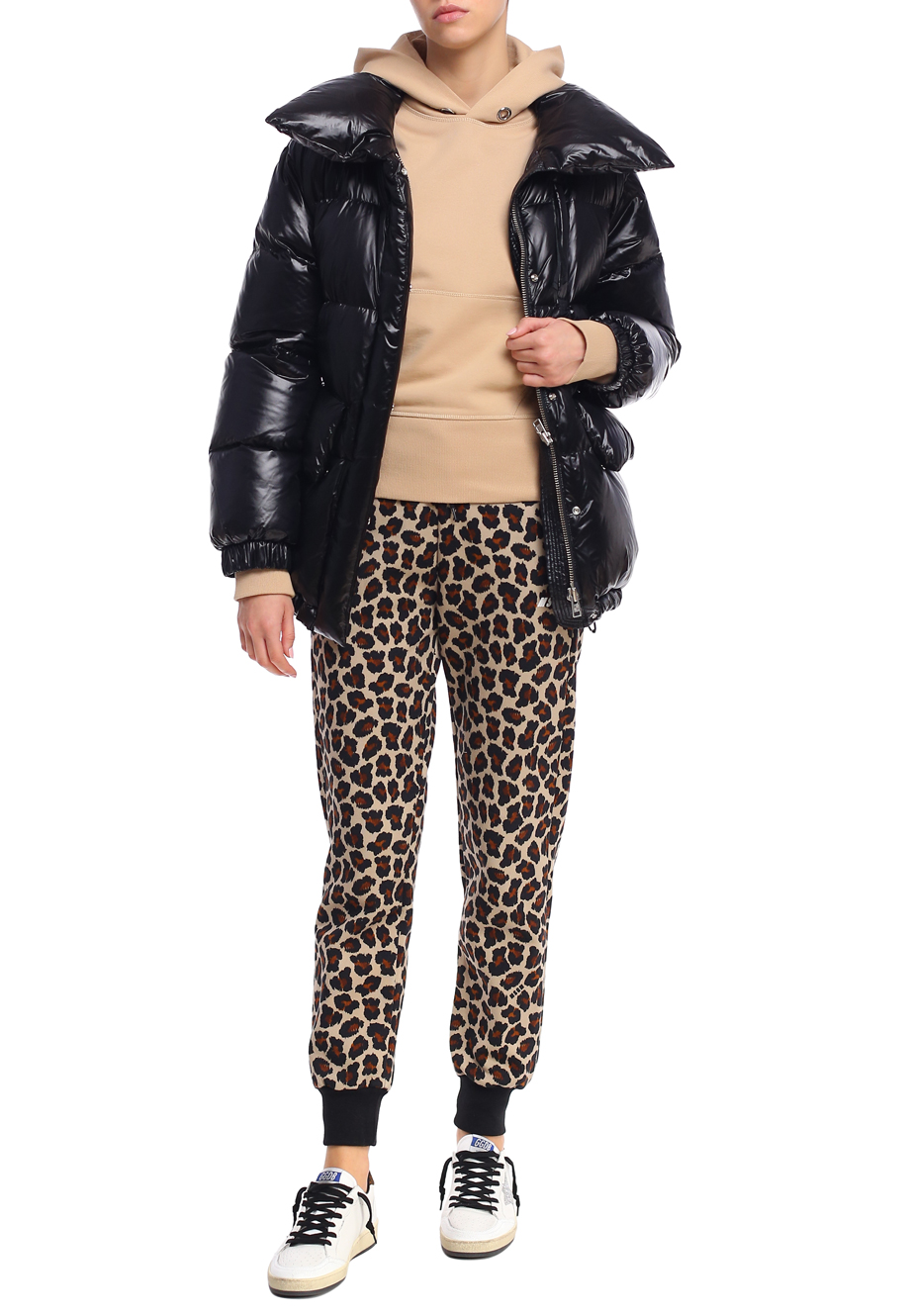 Детали: прямой крой, собранный манжетами, пояс на кулиске со шнуровкой, французские боковые карманы леопардовый принт, логотип сбоку.