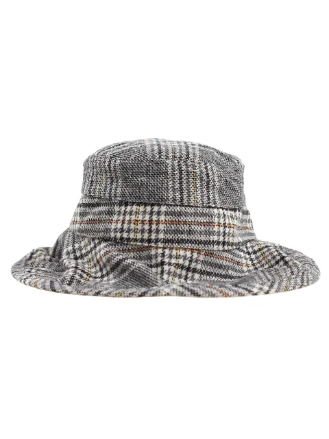 Детали: классическая форма, круглая тулья, мягкие поля, принт в клетку, ленточные завязки.